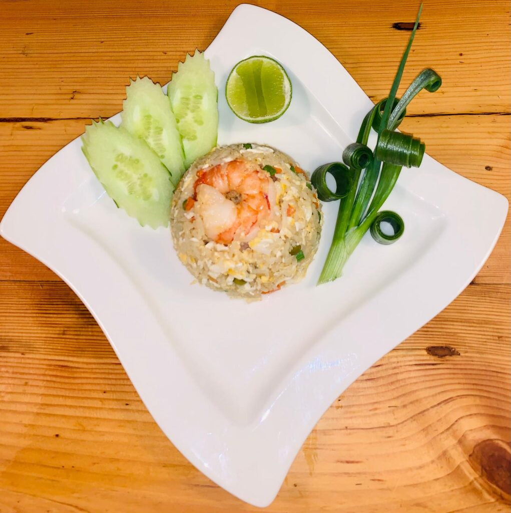 Gebakken jasmijnrijst, ei, wortel, ui, bosui, erwten