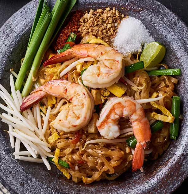 Rijstnoedels, taugé, ei, tofu, wortel, bosui, pinda’s en Phad Thai saus